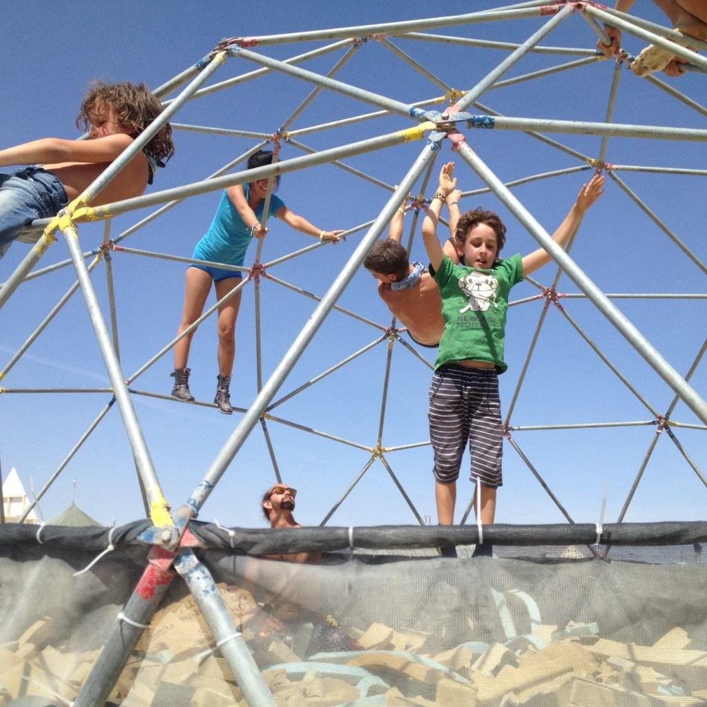 Das Lieblingscamp von Nelio, Liam und Maribel war Camp Do Nothing. Diese hatten einen großen Dom aus Gerüststangen aufgebaut, der innen mit alten Schaumstoffresten befüllt war, in die man reinspringen und eintauchen konnte. Solche Kinderparadiese gab es noch mehrere, z.b. einen gelben Schulbus, der komplett mit blauen Bällchen gefüllt war! Sehr lustig, aber auch sehr sehr staubig. Zum Abhängen in der Mittagshitze gab es nebenan das Hammock Camp. In Hängematten abhängend hörte man anderen beim gar nicht mal so schlechten Karaoke-Singen zu.