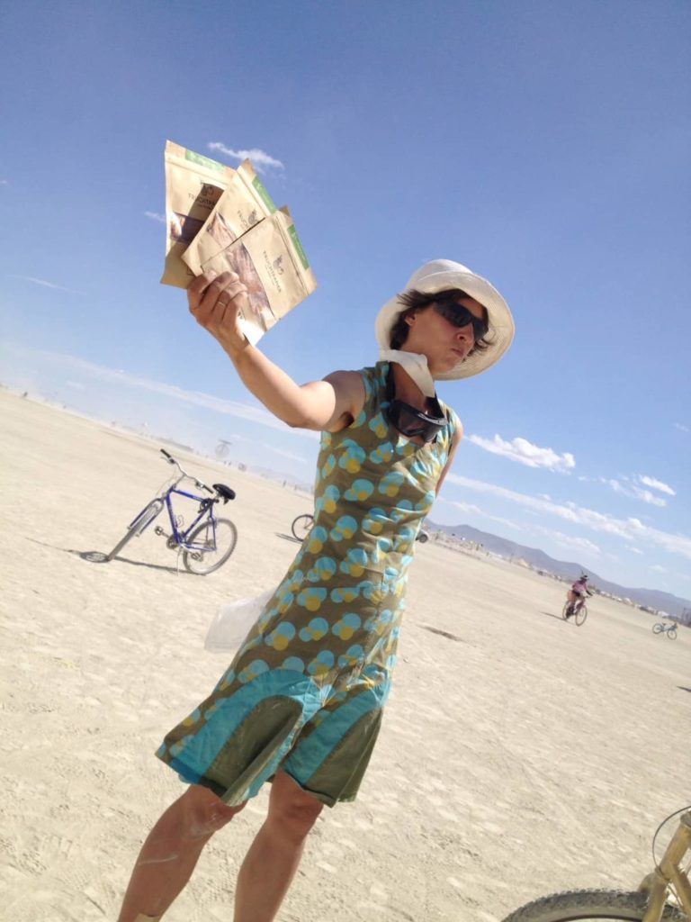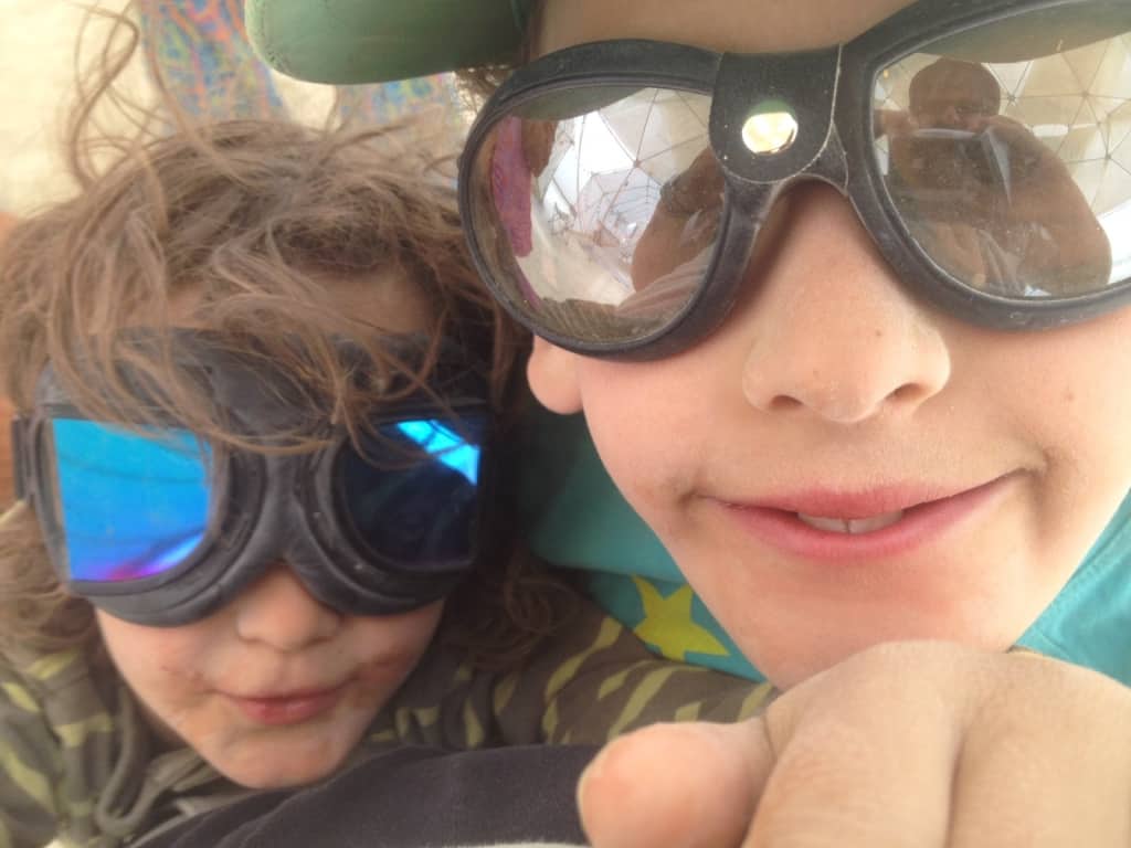 Beim Burning Man herrscht eine Kultur des Gebens, und wir und vor allem die Kinder wurden reich beschenkt mit Aufklebern, Ketten, Blinklichtern … Wir wurden vor allem im Nachhinein noch sehr beschenkt! Aber davon später!
