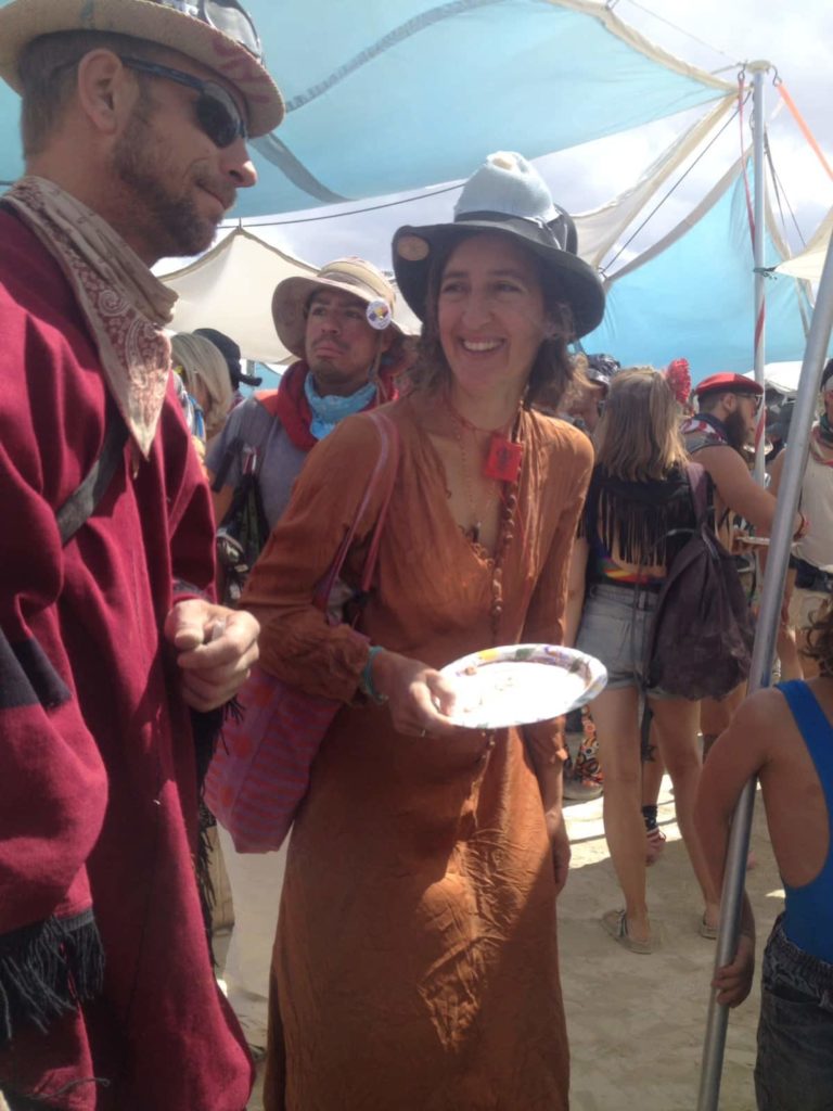 Mich haben besonders die Frauen, die wir die ersten Tage trafen sehr beeindruckt. In einer absoluten Selbstverständlichkeit und Souveränität hatten hier Frauen das Sagen, wie ich es zuvor noch nicht so erlebt habe. Besonders beeindruckend war unsere Camp Köchin Maps, die den Playa Namen Stabs trug, da sie am ersten Tag ihres Dienstes einem der Mitarbeiter vom Mazutempel eine Gabel in den Handrücken rammte, weil er es gewagt hatte, sich ohne zuvor die Hände zu waschen, am Buffet zu bedienen. Klingt brutal, aber Maps war wirklich ein Charakter, sehr sehr beeindruckend!
